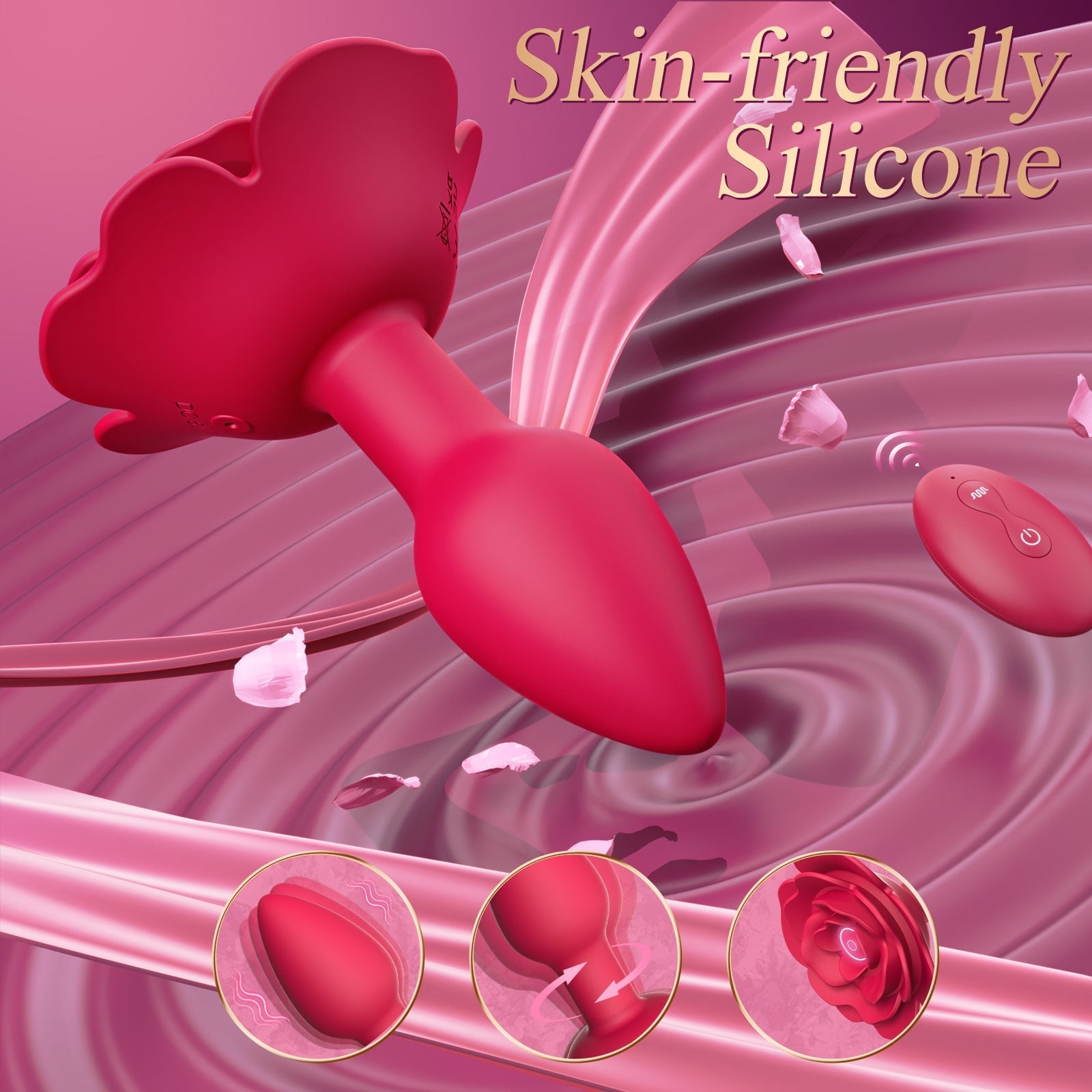 Double Stimulation Rose Female Sex Toy Anal Vibrator with Unique Anchor Design
