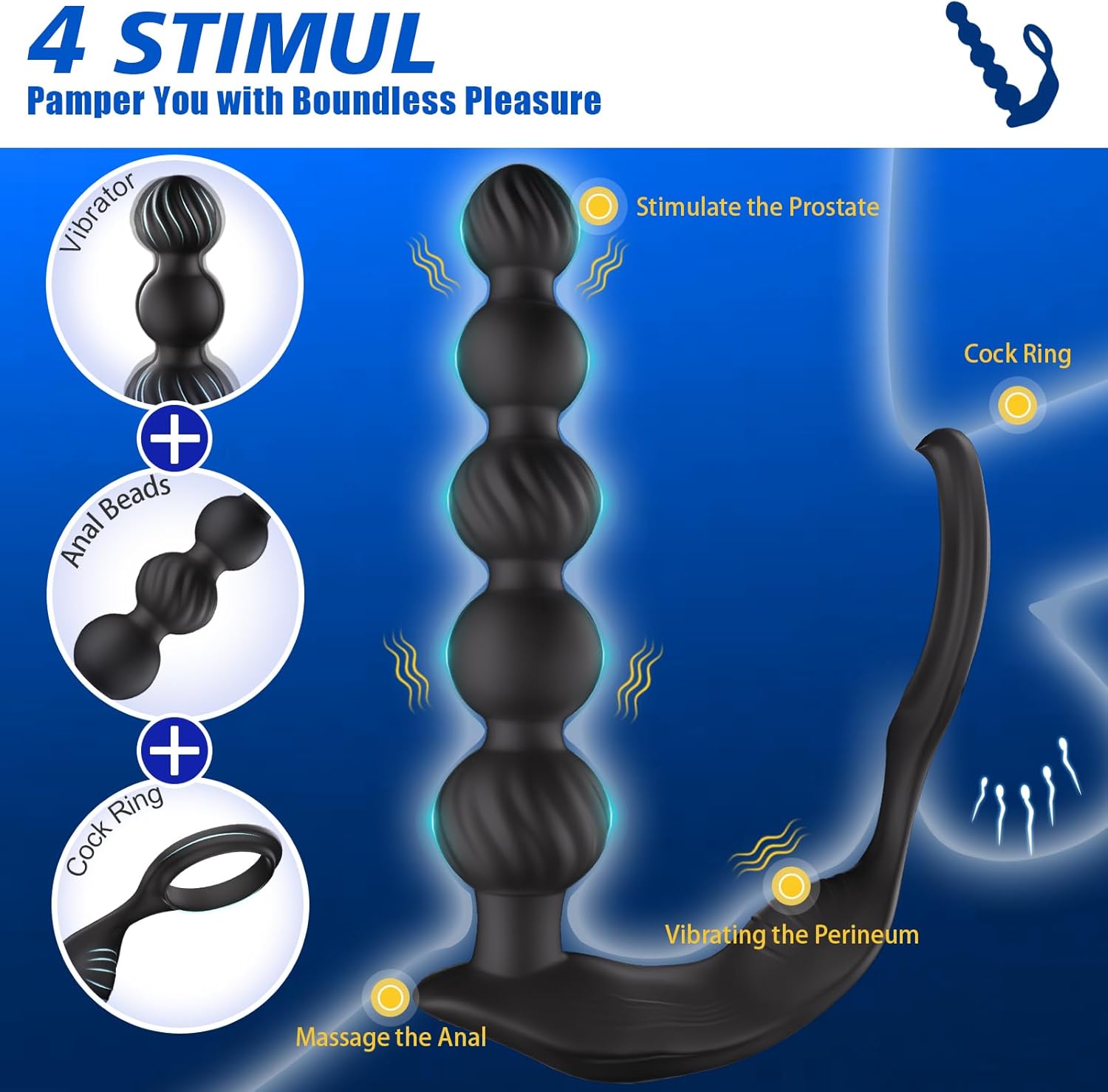 - Multi-Speed Powerful Vibration and Remote Control Sex Toys for Adult Couples: This butt plug with cock ring allows you to cycle through 10 thrilling pulsation patterns for enjoying many different sensations, perfect for anal lovers. And this anal bead is designed with one stretchable penis cock ring at the tail for added pleasure. Whether you appreciate the convenience during solo play, or the power during couples play, the included wireless remote is an exciting feature for use at home or out on the town