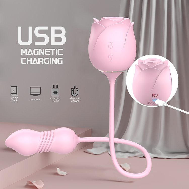 3-in-1 Double Headed Sucking And Tapping Rose Toy With Telescopic Jumping Egg
