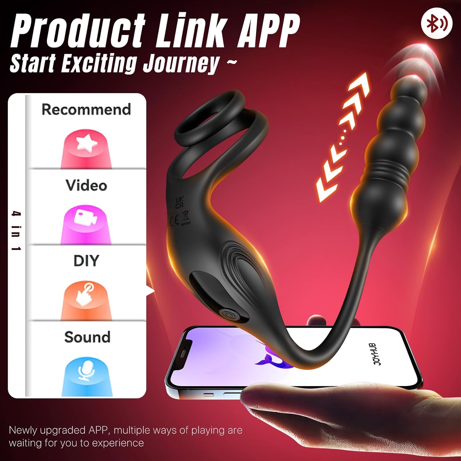 - Three in One Double Penis Ring APP Control: This sex toys consists of a vibrating double cock ring, prostate massager and anal beads, you can use these functions simultaneously or individually, with the app control feature, it offers you a variety modes