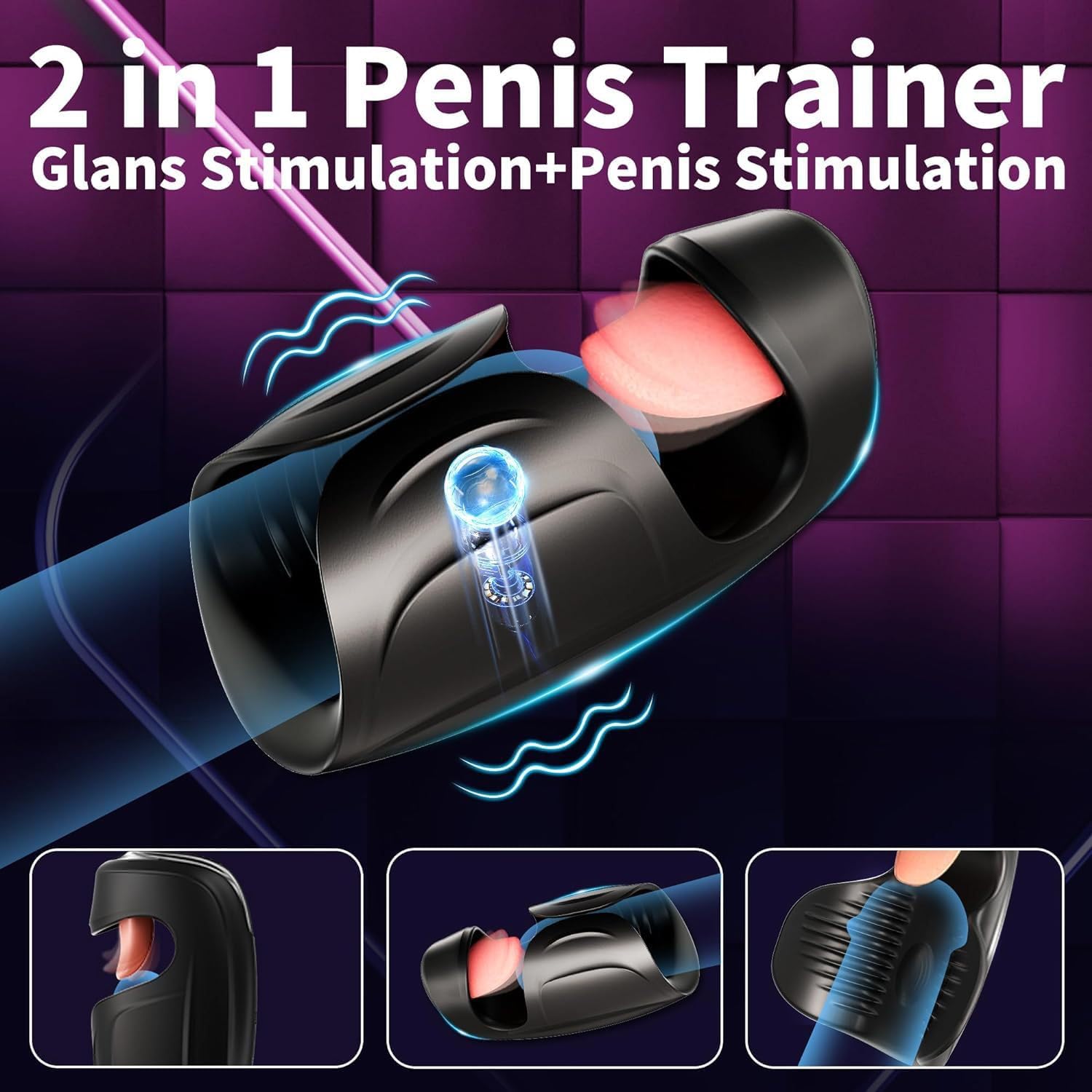 Automatic Male Masturbator - 10 Vibrating Tongue Patterns Dual Action Penis Training Vibrator, Vibrating Stimulator, Glans Penis Trainer, Male Adult Sex Toys, Penis Trainer, Black