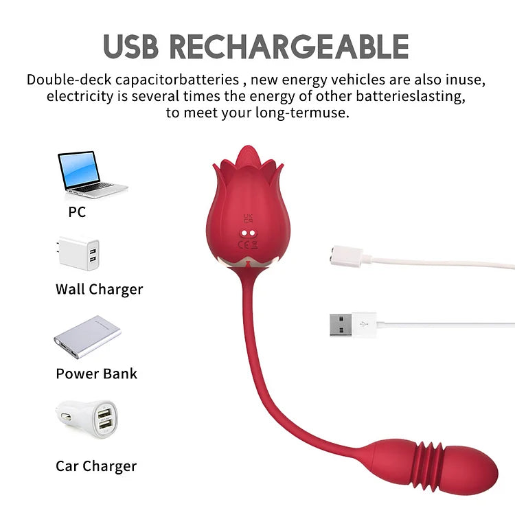 ●Multifunctional Vibrator - This rose toy is tongue licking toy + thrusting + vibrator. The rose toy vibrator comes with 10 speed tongue licking modes and 10 thrusting vibration frequencies. Use the tongue licking vibrator solo or with your partner. Your sex life will be mixed with extra fun and passion.