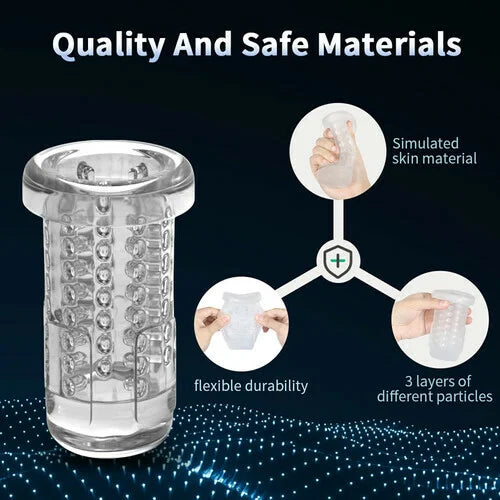 This electric masturbation cup, with 7-pattern telescoping & 7-speed rotation, is designed to maximize fun. The inner of the stroker with large and soft particles that give your penis a lot of stimulation. The sex toy also has women moaning, put on your headphones, you can enjoy the secret.Sexy female voice, the more intense the twitching, the louder the scream, let you crack with your voice. Realistic feeling with this masturbator vibrator. This male masturbator is designed with a firmly suction base which can grab to any smooth hard surface such us bathroom, bedroom and etc.Enjoy it anywhere without using your hands. Eco-friendly TPE material, soft and full of granules, as well as internal multi-layered spiral pleats give you the pleasure of friction to enhance the stimulation of your orgasm.